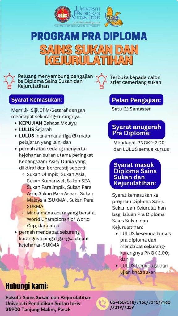 UPSI | Fakulti Sains Sukan dan Kejurulatihan, 35900 Tanjong Malim, Perak Darul Ridzuan info@fsskj.upsi.edu.my +6 015-4879 7172/ 7160/ 7165 / Faxs :01548797288
